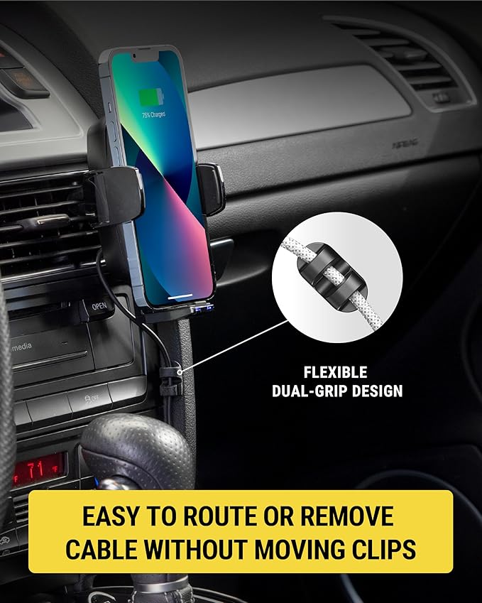 - Cable Management: Perfect for organizing cords in your car, at your desk, or anywhere you use charging cables. Includes six adhesive clips for better organization and easy access to your cords.