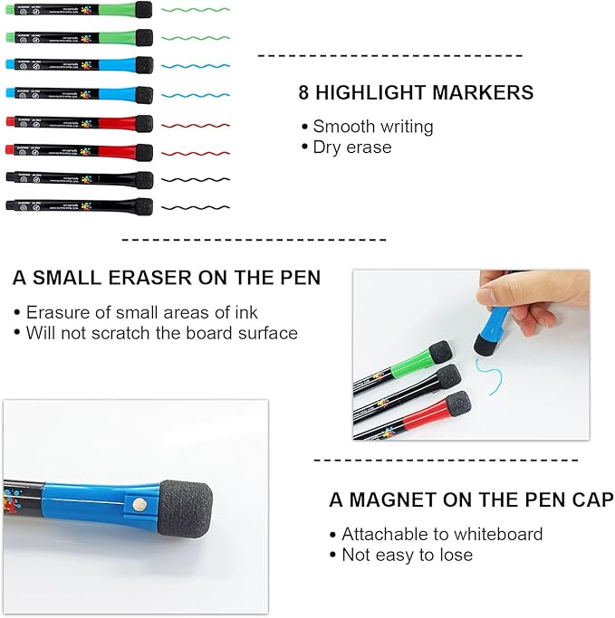 - FLEXIBLE MULTI-USE - Comfortable for daily use in anywhere. This dry erase board is a good idea for small group instruction, homeschool, office, school, kitchen, game room and more. Great help for managers, teachers and students, etc. Perfect for play counting, guided reading, learning, presentation, drawing, education and grocery list etc.