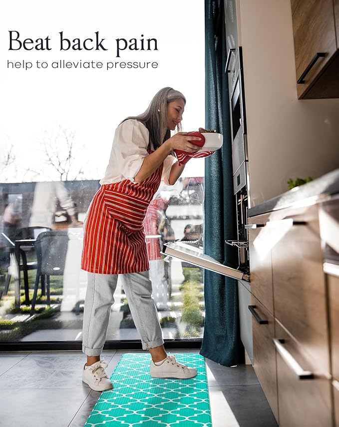 Anti-Fatigue Kitchen Mat Set – 2-Piece Memory Foam Cushioned Mats for Standing – Teal Lantern, 18×30 & 18×60, 0.4 in Thick, Waterproof, Non-Slip – Homergy