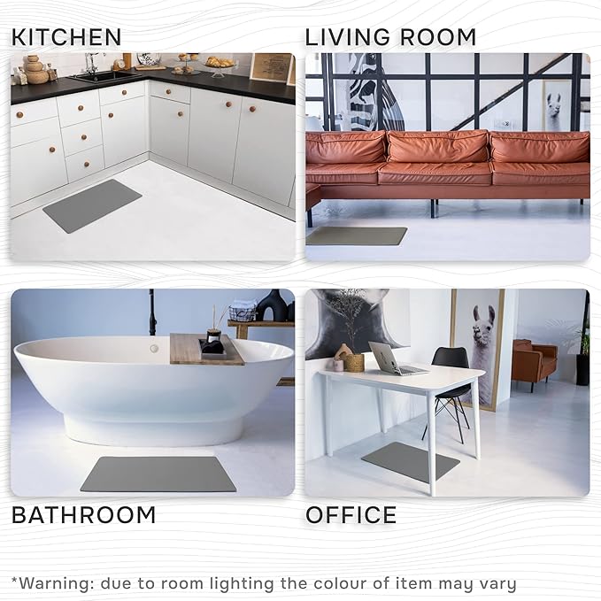 - ✅ Fits Any Space – Sized at 17.3" x 30.3", this cushioned mat is perfect for kitchens, laundry rooms, bathrooms, offices, and more. Works on tile, wood, marble, and other common flooring