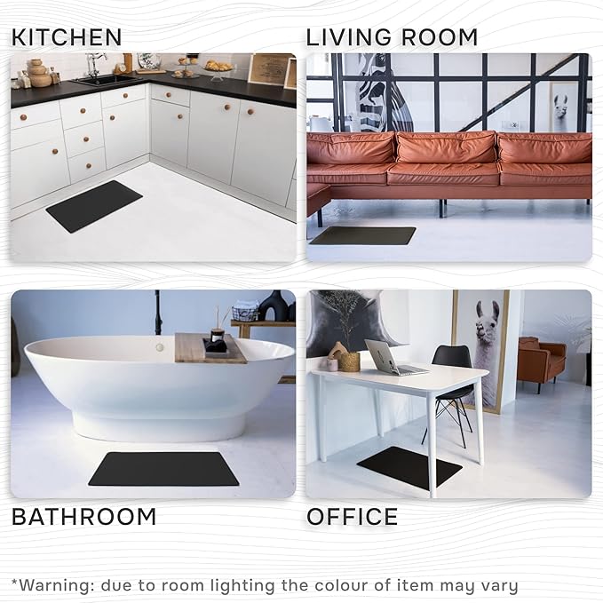- ✅ Fits Any Space – Sized at 17.3" x 30.3", this cushioned mat is perfect for kitchens, laundry rooms, bathrooms, offices, and more. Works on tile, wood, marble, and other common flooring