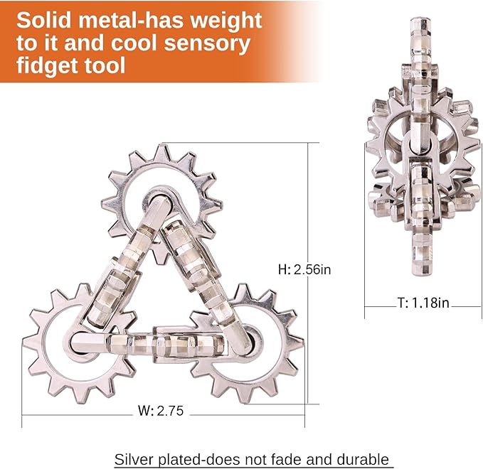 - A DURABLE SENSORY TOY - Crafted with zinc-alloy and silver plated ,durable and not fade in color. Engage your fingers in full-motion to help with manual dexterity. Make a nice gift /stocking stuffer for teens and adults