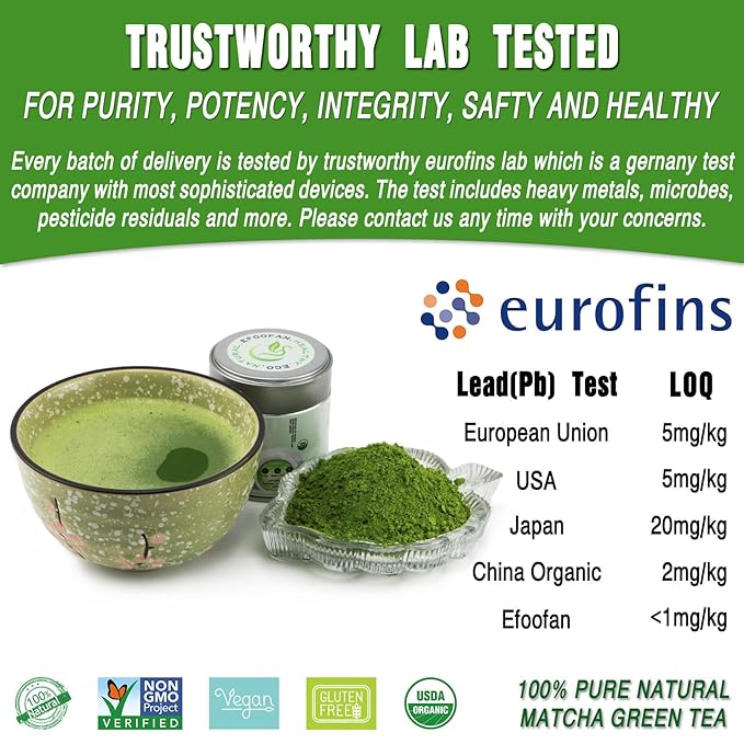 - ✔️ 【Trustworthy Test Guarantee】Authority Third Party Lab Test Qualified for Ceremonial Grade Matcha Powder Delivery - Eurofins Test for Pesticide Residual, Lead and Metals to Ensure Purity.