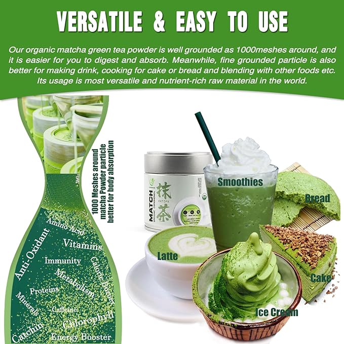 - ✔️ 【100% Organic & NON-GMO】100% USDA/JAS/EU International Certified Organic Matcha Powder Ceremonial Grade - Ecologic Tea Plantation Direct to Customers, Reduce the Intermediate Links.