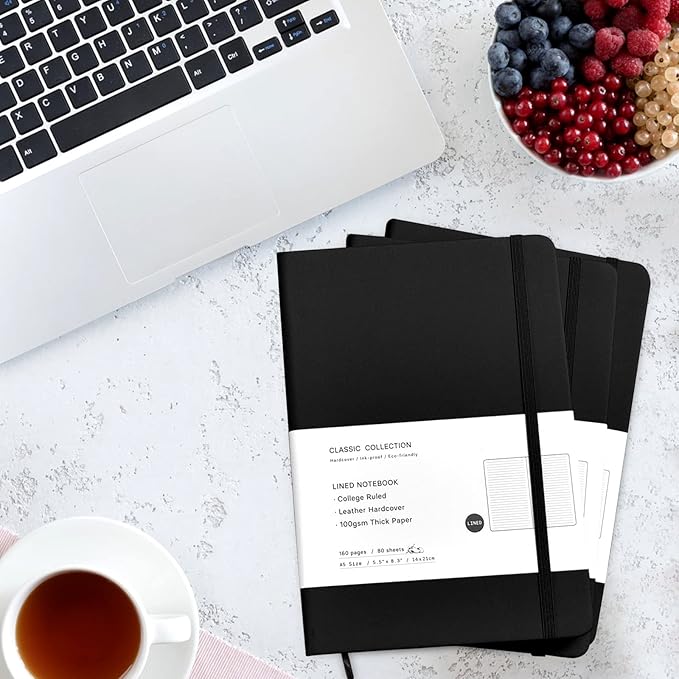 - Packaging and Size: you will receive 12 packs of hardcover journal notebooks in black, A5 size 8.3 X 5.5 inches, each notebook has 160 pages / 80 sheets, each sheet has 26 lines, each line spacing 0.27 inch, enough for your daily study and work needs