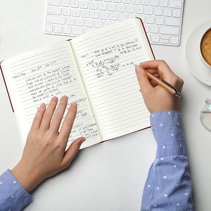 - Lies Flat Design: the durable faux leather notebook journals is designed to lie flat and can be fully opened 180°, allowing you to write freely on the page with only one hand. Keeping a diary, taking notes and planning has never been easier
