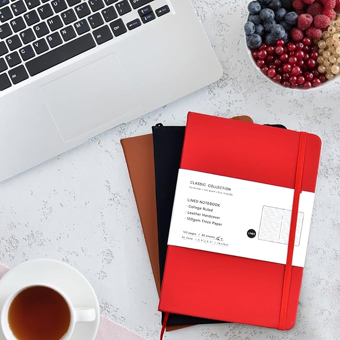 - Packaging and Size: you will receive 6 packs of hardcover journal notebooks (black/red/blue/brown/green/gray, 1 pack for each color). A5 size 8.3 X 5.5 inches, each notebook has 160 pages / 80 sheets, each sheet has 26 lines, each line spacing 0.27 inch, enough for your daily study and work needs