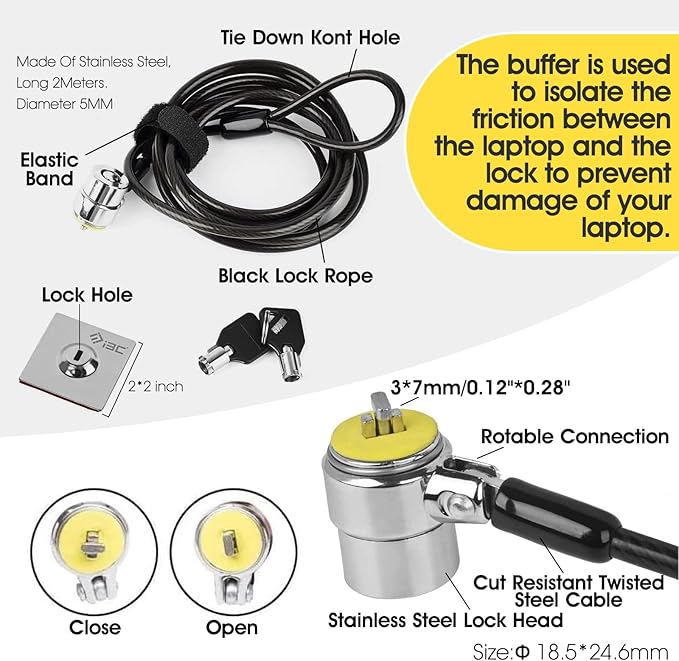 I3C Laptop Cable Lock Hardware Security Cable Lock Anti Theft, Anchor Plate & 2 Keys Compatible with Notebooks Smart Phone Tablet Electronic Products (2 Pack)