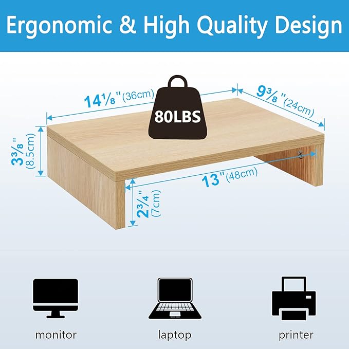 TEAMIX 14.2 inch Monitor Stand Riser, Wood Monitor Riser with Storage for Desk Small Monitor Stand TV/Screen/PC/Laptop Riser Computer Stand Desktop Shelf (Maple-14.2 inch)
