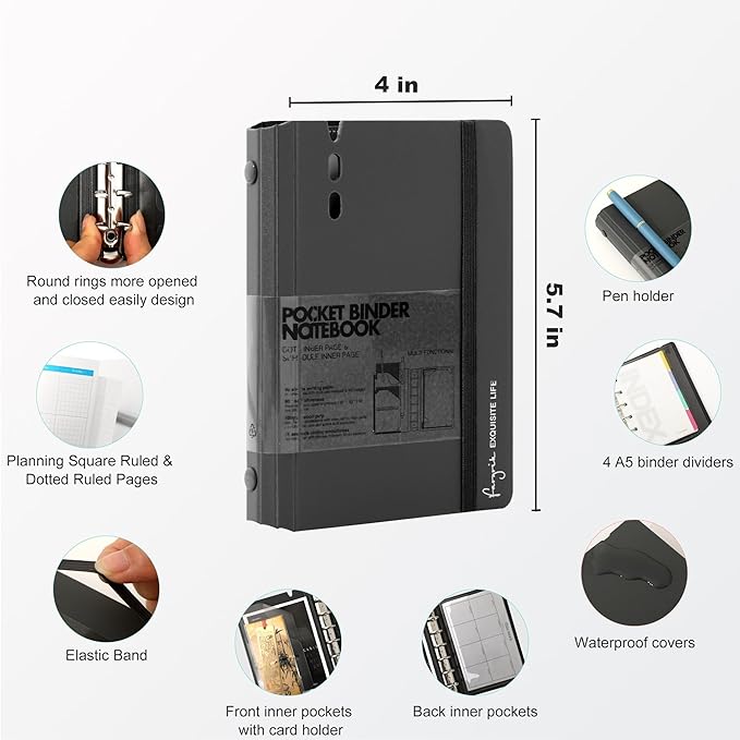 - 【Convenient Structure】The A7 6-ring binder is structured with a convenient metal elastic closure, A7 refill papers including 20 sheets of planning square grid and 20 sheets of dotted grid pages, binder pockets, and 4 colorful subject dividers. The A7 binder round ring can hold up to 120 sheets. Perfect for a school notebook, office notebook, travel journal, budget notebook, personal organizer, or a planner notebook, etc.