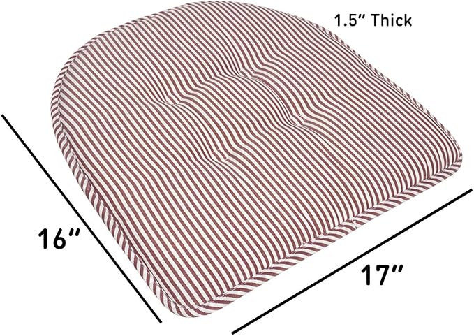 Sweet Home Collection Chair Cushion Memory Foam Pads Tufted Slip Non Skid Rubber Back U-Shaped 17" x 16" Seat Cover, 6 Pack, Pinstripe Burgundy, (Pack of 2)