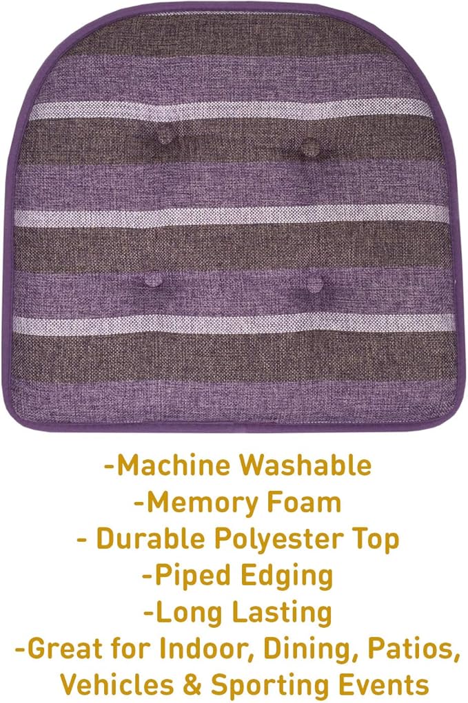 Sweet Home Collection Chair Cushion Memory Foam Pads Tufted Slip Non Skid Rubber Back U-Shaped 17" x 16" Seat Cover, 6 Pack, Bradford Purple, (Pack of 2)