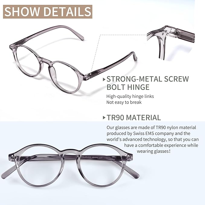 - HIGH QUALITY DURABLE FRAME: Ultra lightweight and flexible TR90 material, durable and comfortable for long-term wear. The round frame design allows you to look stylish while working or playing games.