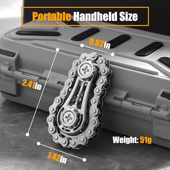 - ⚙Multiple Spinning: You can spin it by gripping the button at one end of the chain with your thumb and forefinger, or roll it in your hand and on a table. Creating a relaxing sound like a bicycle chain.