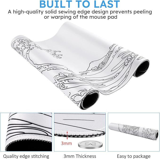 - Extended Large Mouse Pad Size: Large desk mat's measure: 35.4 x 15.7 inches. The desk pad is large enough to have a mouse, gaming keyboard, and other desk items Just immerse into your work or games without worrying about the annoying mouse pad movement