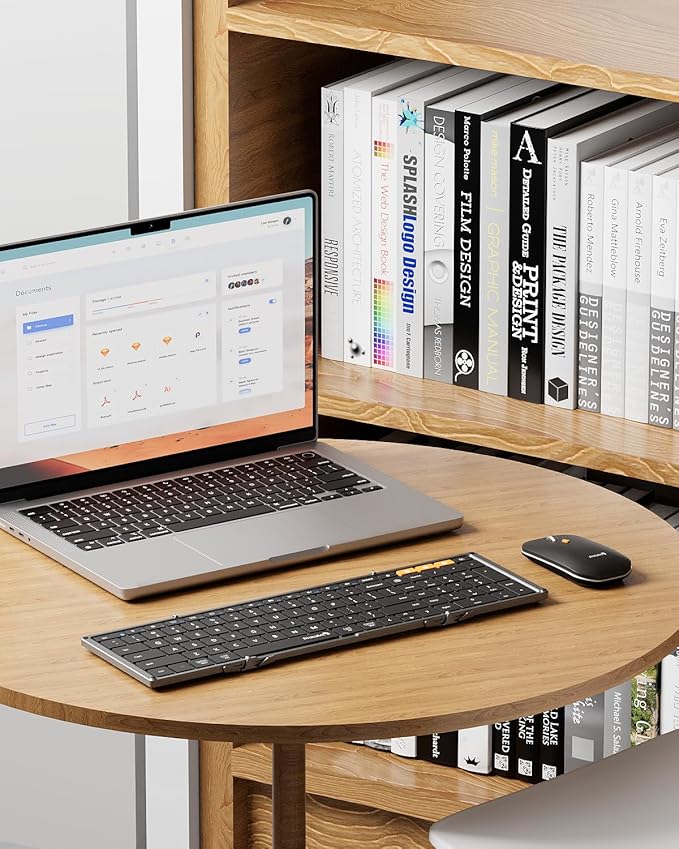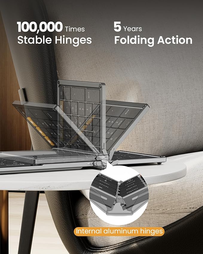 - Work Quietly Anywhere: Our foldable bluetooth keyboard features whisper-quiet scissor switches and low-profile keys, paired with a noise-reducing mouse to deliver library-level silence. Perfect for meetings, coffee shops, and flights - enhances focus by 50% without disturbing others
