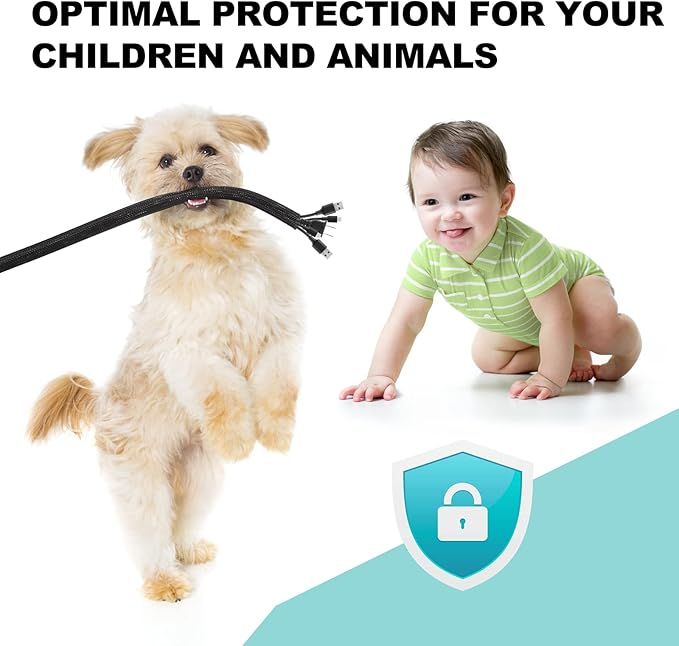 - 【Safer for Pets and Children】 AGPTEK Cable Sleeve, pets dog cat cord protectors, pet-friendly and non-toxic, safe for pets and children. It protects cable wires, prevents children and pets rabbits, dogs, cats, hamsters, and gerbils from chewing and scratching on them, and makes your home safer and more organized