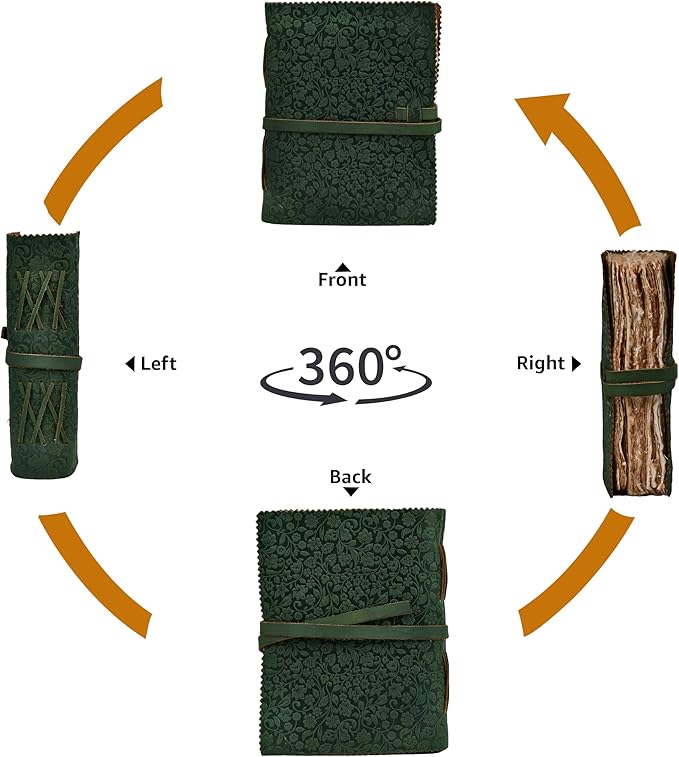 - Genuine Leather Journal: Luxurious full-grain leather cover, naturally tanned for an authentic feel. Embrace the craftsmanship with this durable, Floral embossed leather notebook, ideal for writers, travelers, and journal enthusiasts seeking a premium writing experience.