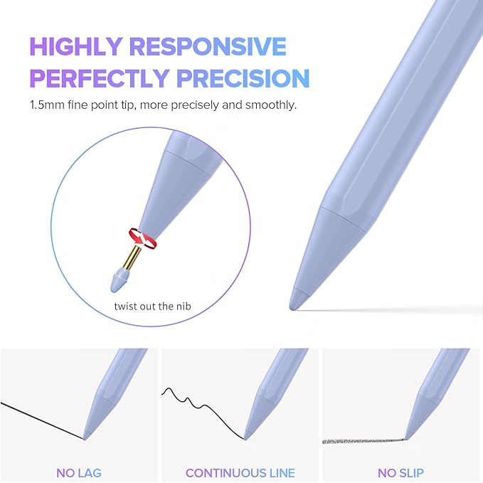 Stylus Pen for iPad 6th-11th Generation-2X Fast Charge Active Pencil Compatible with 2018-2025 Apple iPad Pro 11"/12.9"/M4, iPad Air 3/4/5/M2/M3,iPad mini 5/6 Gen-Purple