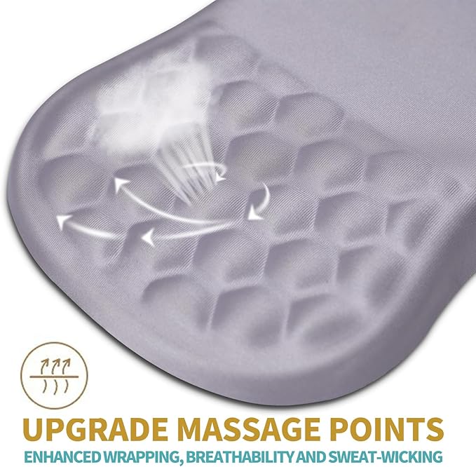 - 【Ergonomic Massage Design】The innovative ergonomic 8-degree slope and massage bump design perfectly support the wrist and palm. Massage bump design can effectively relieve wrist pain and fatigue, improve carpal tunnel syndrome (CTS), strengthen the air circulation between wrist and mouse pad, prevent sweating, and keep your wrist in the most comfortable state.