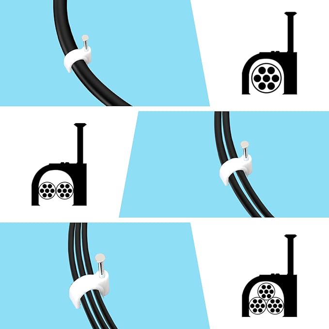 - [ Durable ] Cable clips are made of premium stabilized plastic, white style is more versatile, and integrates with the home environment to make it cleaner. Round cable clips allow you to secure runs of round cables like coax to walls and floorboards for a cleaner look and prevent tripping over loose cables