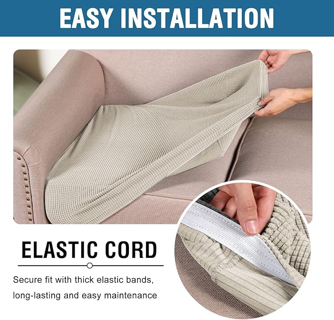 - NON SLIP: Effortless for installation (guide photos on selling page), sewn with thick elastic loops to cover the bottom edges. It is easy to install and take off, making your home more harmony, high recommended for both leather and cloth furniture