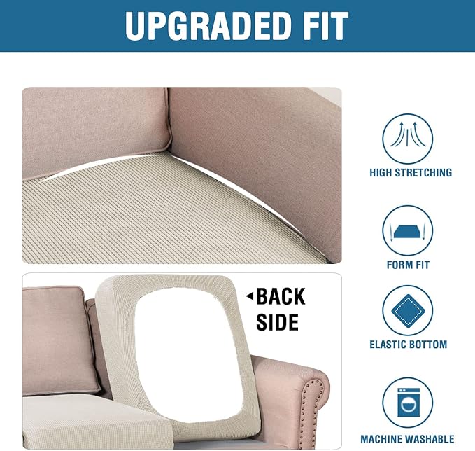 - GREAT FIT: Set of 3. This innovated cushion slipcover is crafted from durable and soft high stretch knitted jacquard fabric. Sofa Seat Cover(fit total sitting area between 58.8-88.5 inches). Feature one-size-fits-most, kindly measure before ordering. Suitable for both T cushion and Box cushion styles