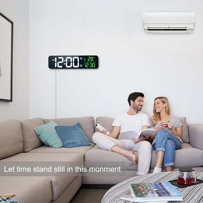 Digital Clock, Clock for Bedroom, Digital Wall Clock, Clocks for Living Room Decor, Desk Clock, Table Clock, Digital Clock Large Display, Smart Alarm Clock for Office Green (Wired Black+Green Digit)