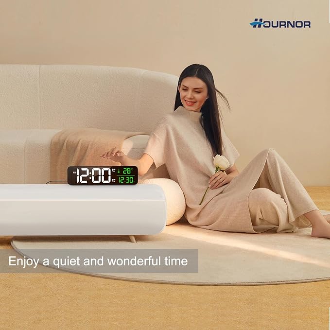 - 【Large Display】The digital clock has a 10.4 inch large screen display. Huge and clear numbers present comprehensive information such as time, date and indoor temperature. Even the elderly can read the time clearly from across the room. Reminder: Its size is relatively large.