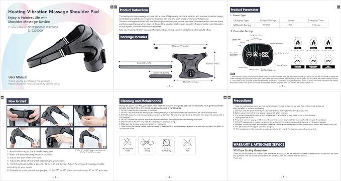 - Led Temperature Display and Low Power Warning : The led display for temperature help you to choose the most comfortable temperature. When low power belows 5%, the shoulder pad will beep to remind you to control the usage time and charge the shoulder support in time. NOTE: Please use the attached USB-Cable to charge the item as other kind of usb cable will affect the charge time and charge capacity of the battery