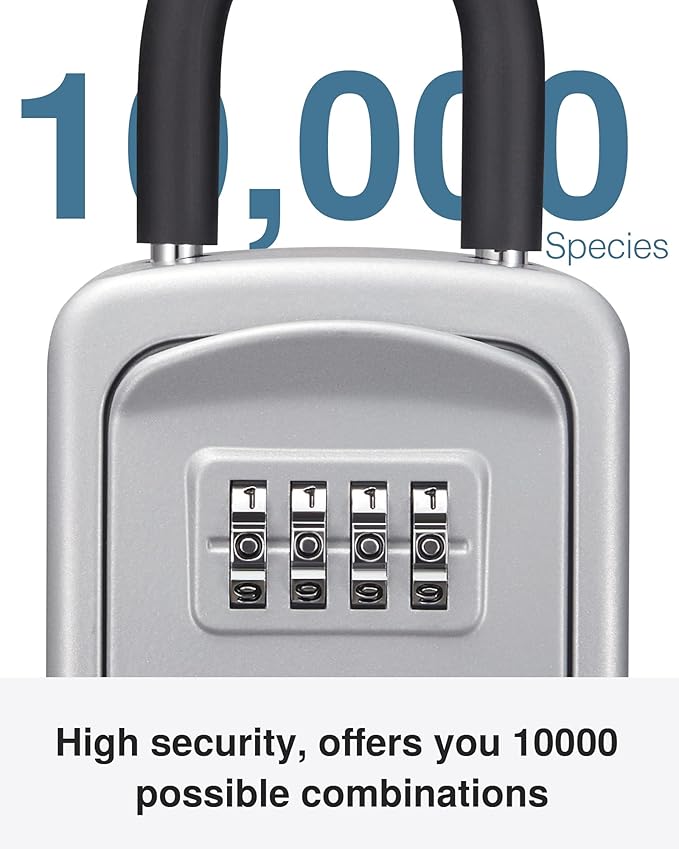 - High-Security Lockbox: Resettable 4-digit code offers you 10,000 possible combinations. The 4-digit combination is easy to remember and reset, not easy to be cracked and ensures the security of your keys.