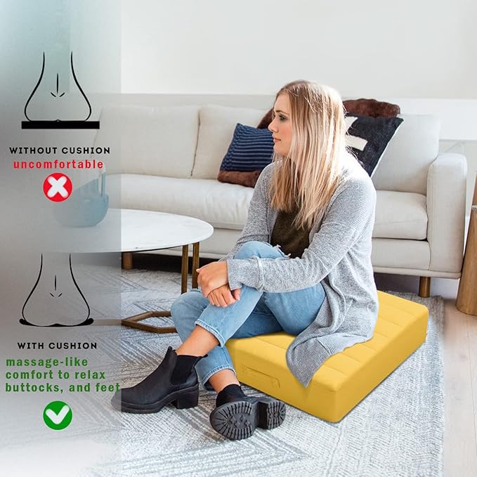 MeMoreCool Square Floor Pillow Seating for Adults Kids, Large Meditation Cushion Floor Pillow with Thick Foam & Soft Tufted Cover, Washable Big Pillow Seat Floor Cushion for Sitting Yoga 22" Yellow