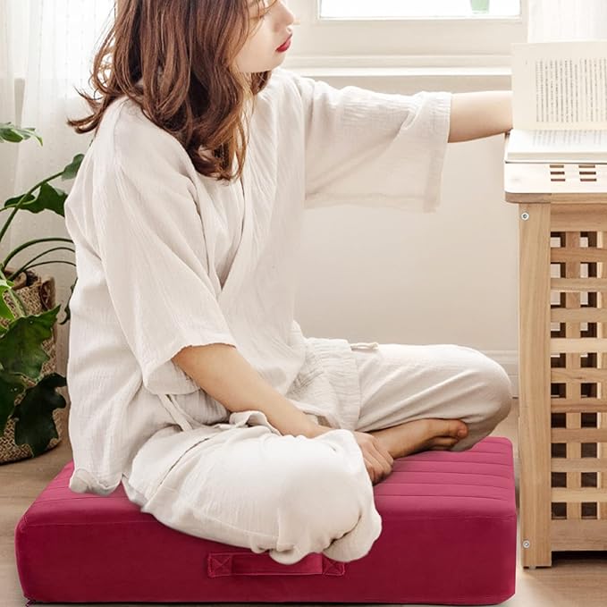 MeMoreCool Square Floor Pillow Seating for Adults Kids, Large Meditation Cushion Floor Pillow with Thick Foam & Soft Tufted Cover, Washable Big Pillow Seat Floor Cushion for Sitting Yoga 24" Wine