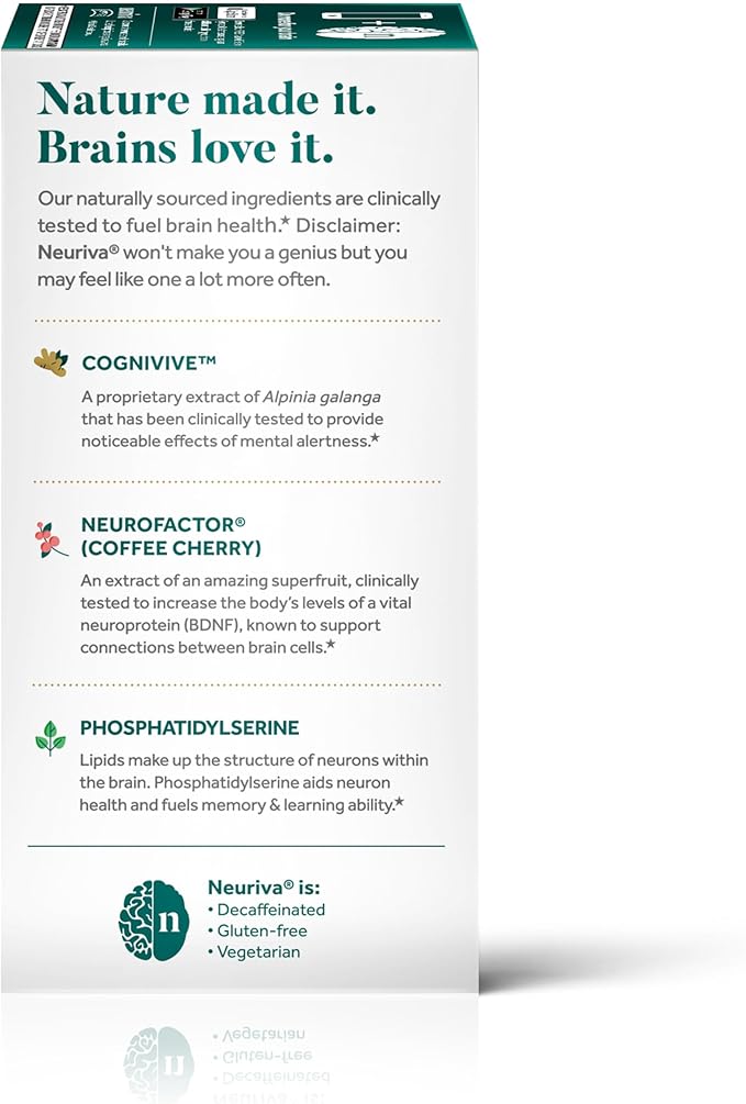 - BRAIN HEALTH SUPPORT FOR ADULTS: Neuriva Ultra contains clinically tested, naturally sourced, ingredients like as CogniviveTM, NeurofactorTM plus Phosphatidylserine, and B Vitamins which work together to promote optimal cognitive function and support memory and focus.*