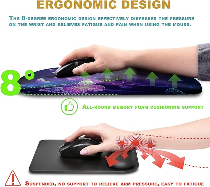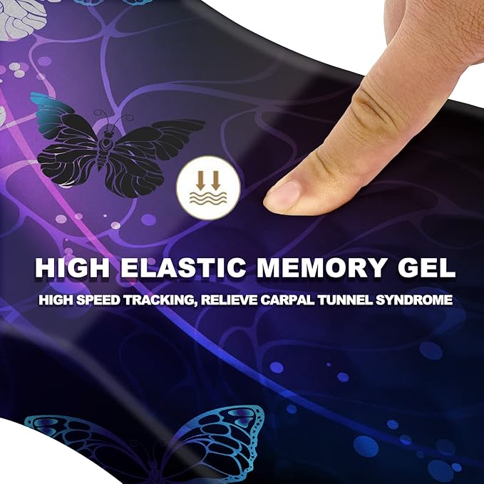 Ergonomic Mouse Pad with Wrist Rest Support, Massage Design Mouse pad Relief Carpal Tunnel Pain, Entire Memory Foam Non-Slip Mouse Pad, Computer Mouse Pads for Wireless Mouse Pad, Cool Butterfly