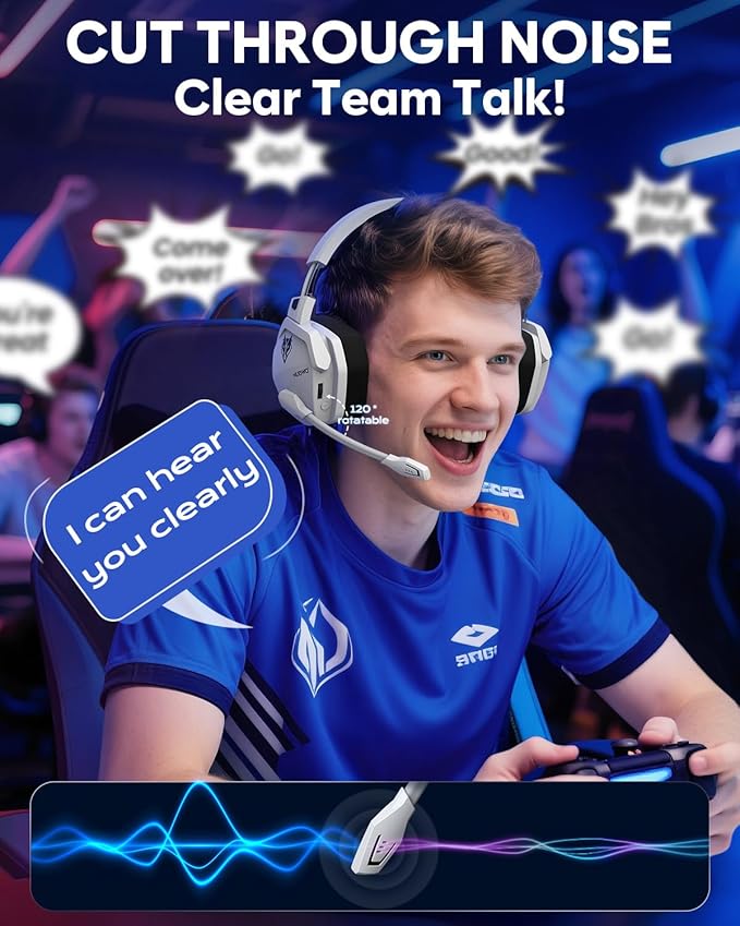 - Immersive Sound Sync for Competitive Edge: Equipped with a 50mm composite diaphragm driver, this headset delivers immersive 3D surround sound—command the explosive audio of RPG epics and pinpoint tactical footsteps in FPS battles. Powered by a proprietary wireless chip, achieve seamless audio-video synchronization for true-to-life immersion