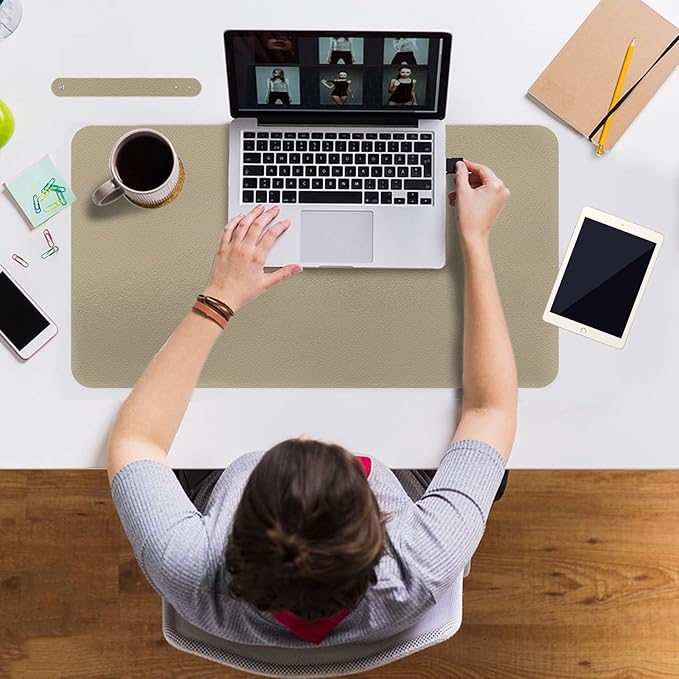 Boutilon Leather Desk Pad Protector,Non-Slip Mouse Pad,Laptop Desk Pad,Office Mouse Mat,Waterproof Leather Desk Blotter,Desk Writing Pad for Office and Home (S-Champagne,24"x 14")