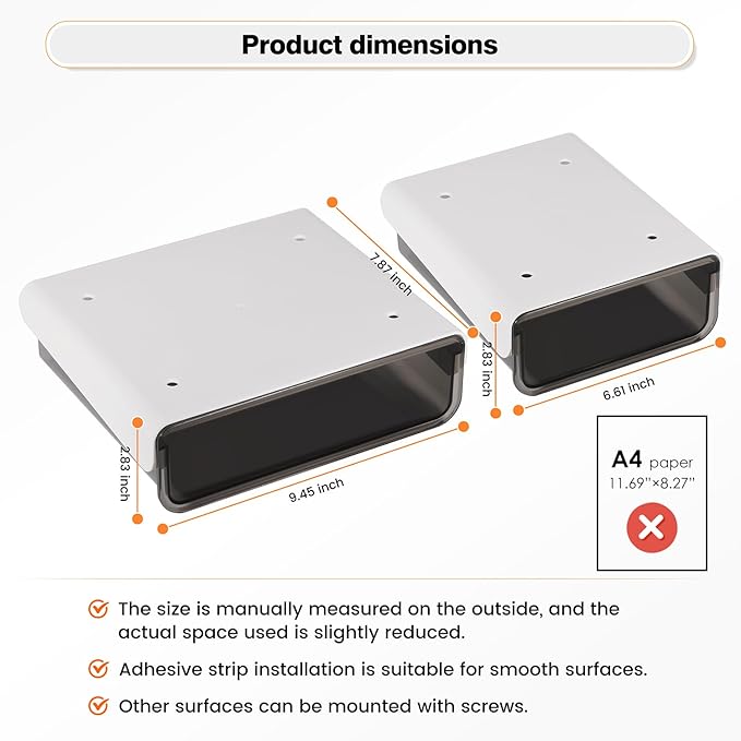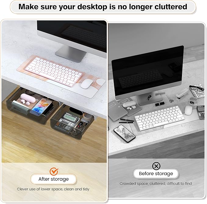 - 【MULTIFUNCTIONAL STORAGE】Our under shelf drawer can accommodate a variety of items, from calculators, pencils, rulers, notebooks, books, smartphones, headphones, cosmetics, to forks, and more, keeping clutter at bay.