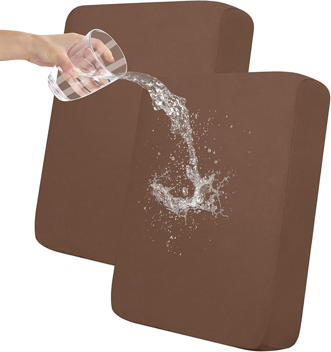 Easy-Going 100% Waterproof Chair Sofa Seat Cushion Slipcovers Couch Cushion Cover Stretch Furniture Protector for Kids, Pets (2-Piece Loveseat Cushion, Brown)