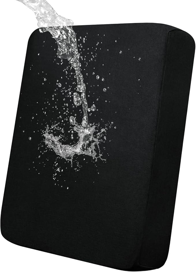 - 100% Waterproof Fabric: Top Fabric is processed with waterproof treatment, and back coated with waterproof layer. Dual waterproof feature can guarantee 100% waterproof effect and leakproof. 15% spandex + 85% polyester, back coated with TPU film. The cushion cover is a great choice for homes with children and pets.
