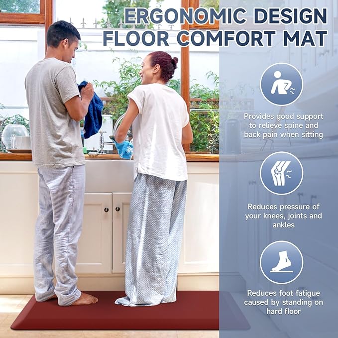 - 【Anti-Fatigue】Comfort floor mat provides comfort when standing. Reduces pressure on knees and ankles. Relieves back and spine pain when standing and relieves fatigue caused by standing for long periods