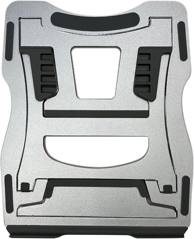 - [Light and strong] aircraft grade aluminum alloy with a brushed and anodized finish. Weighs only 0.85 lbs. but can support up to 40 lbs. Curved corners and rubber on each side prevent scratching and shaking Foldable laptop stand