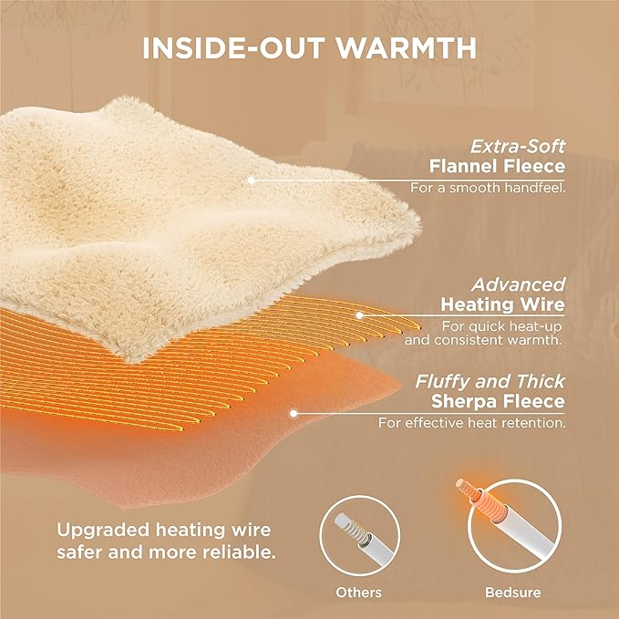 - Safer & More Reliable: Conducted in Bedsure Intertek-Recognized Satellite Lab, 74 safety tests with standards surpassing UL ensure safer performance. This heating blanket is ETL and FCC certified, and its default 3-hour auto shut-off prevents it from overheating so that you can enjoy warmth with complete peace of mind
