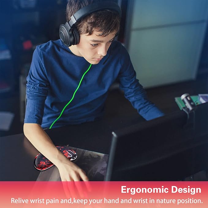 - 【Excellent Shape and Size】 Designed curve shape helps you keep the wrist in the straight line, avoid joint and wrist problems, as well as release the stress of elbow and shoulder. 5.5 x 3 x 1 inches mouse wrist rest pad comfortably support your hands and wrists, which is friendly with different type of mouse.