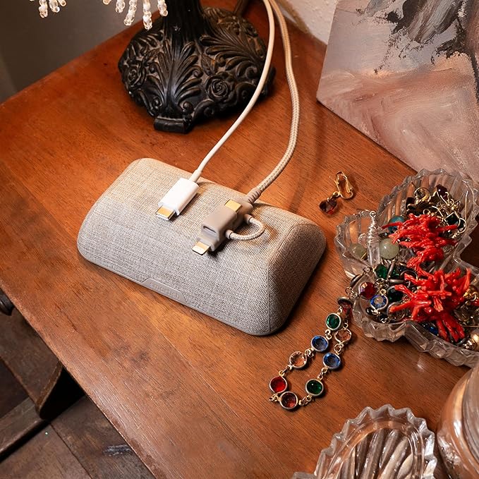 - Heathered-Fabric Cover - Practical without making your space fugly. Cable Wrangler isn't just functional, it's also stylish. The heathered-fabric cover gives it a sleek and modern look that complements any décor. It won't look out of place on your desk at work or next to your bed at home. Magnetic surface is scratch-safe and leaves cables clean with no residue. You can choose from a variety of colors to match your personal style or blend in seamlessly with your existing furniture.