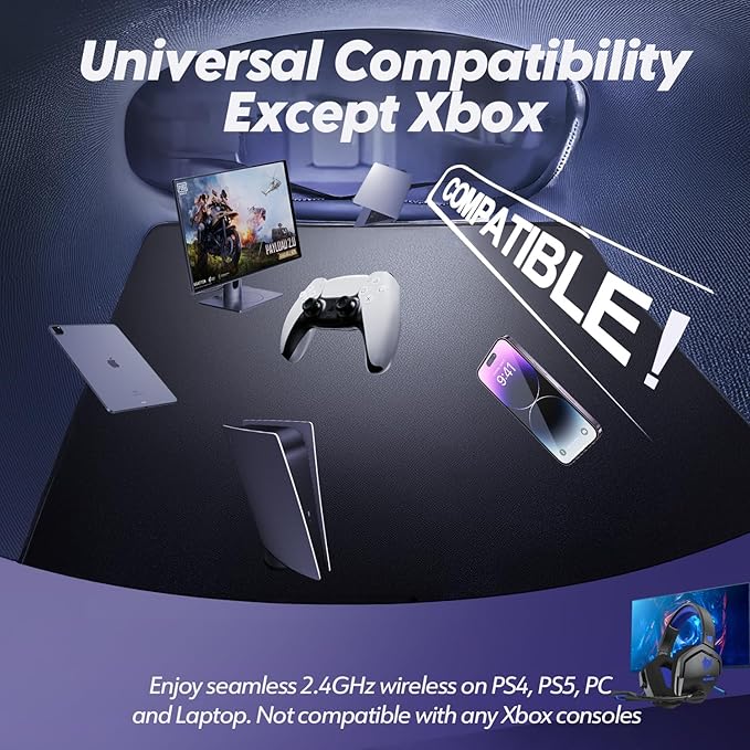 - Effortless Wireless Gameplay - Transition from tangled cables to smooth wireless gaming. Leveraging a 2.4GHz connection through its USB dongle, this headset ensures consistent gameplay for PCs and many consoles. Note: Some consoles may not support this wireless feature.
