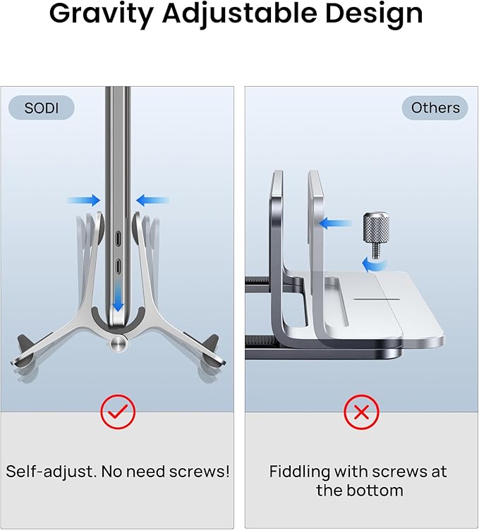 SODI Vertical Laptop Stand for Desk, Gravity Auto Lock Vertical MacBook Stand, Aluminum Laptop Vertical Dock Stand Holder Compatible with MacBook Pro, MacBook Air, Silver