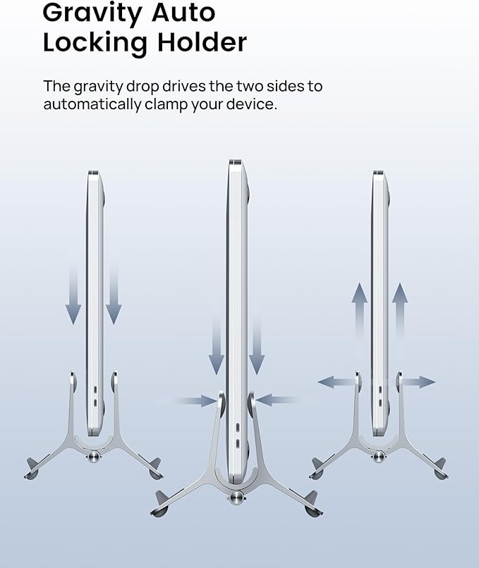 - 【Self-adjustment】Effortlessly adjust your laptop with gravity, with no screws needed or manual adjustments, ensuring a secure fit every time. Fits most laptops and tablets up to 1.05 inch in thickness.
