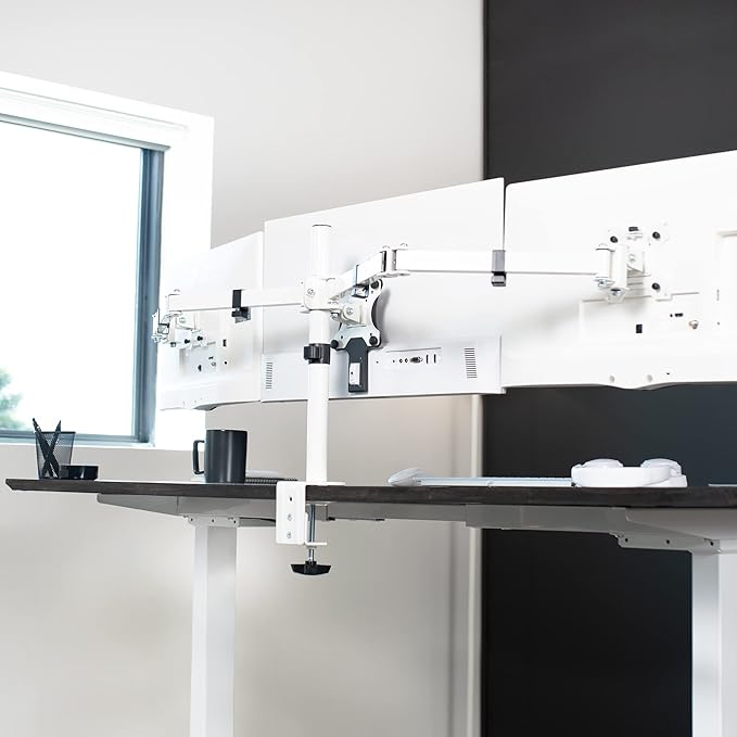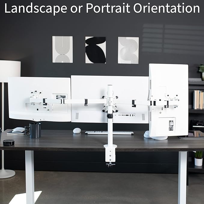 - Sturdy Mounting: The heavy-duty C-clamp attaches to desktops up to 3.25” in thickness with simple hand-tightening, and an optional grommet mount is included. Both mounting options hold your triple-screen setup safe and secure