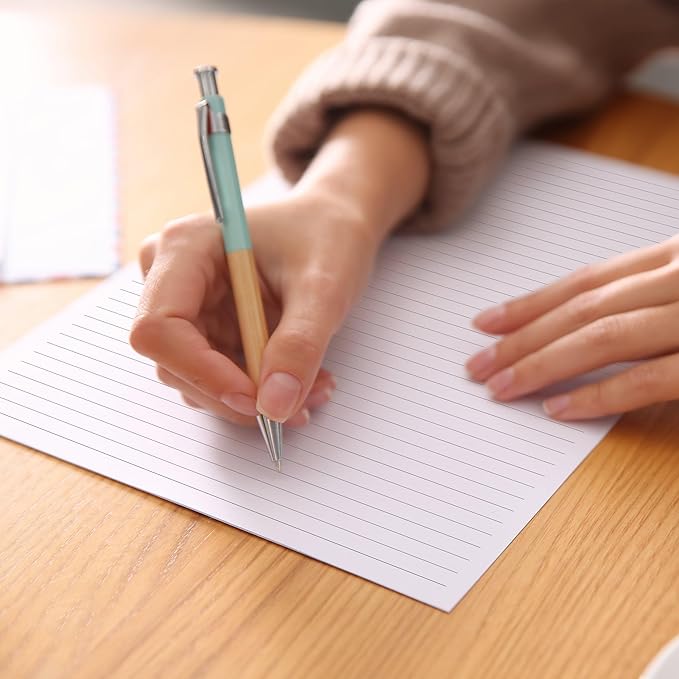 - Paper Stats: Letter Size Paper (8.5 inch x 11 inch), White Paper, Lines 7mm spacing, lines printed on both sides.